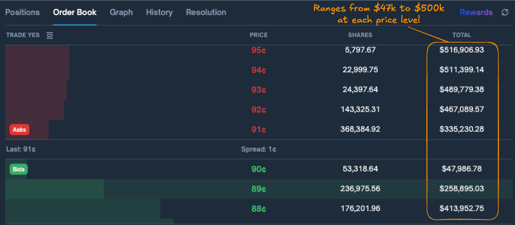 An interesting discovery is that polymarkets for upcoming Fed decisions can support position sizes of several hundred thousands dollars without causing a significant price impact. Larger trades, however, can quickly consume the available liquidity and move prices, limiting scalability.