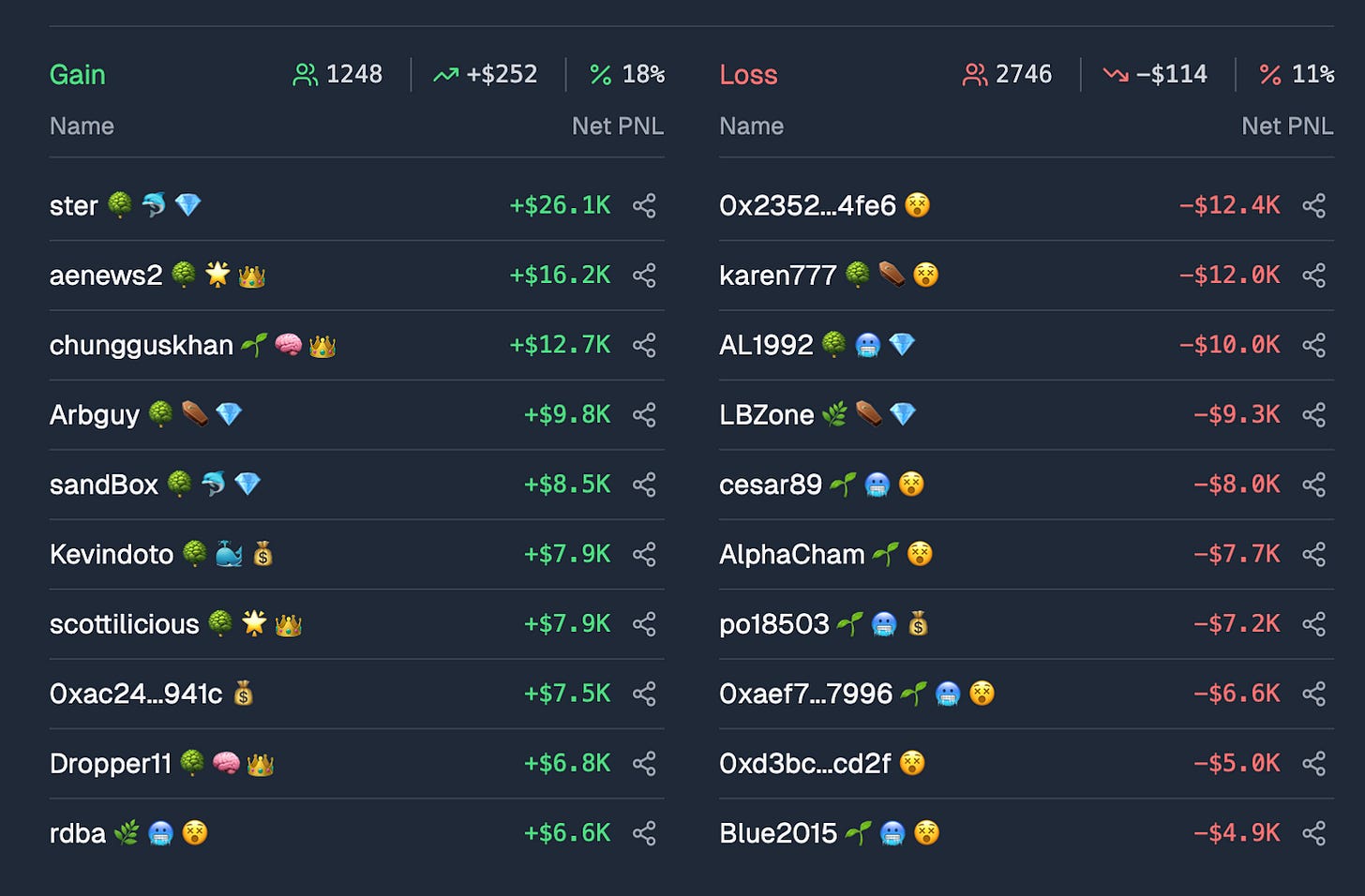 AENews, for example, made over $16,000 on this single market, ranking #2 out of nearly 4,000 traders.