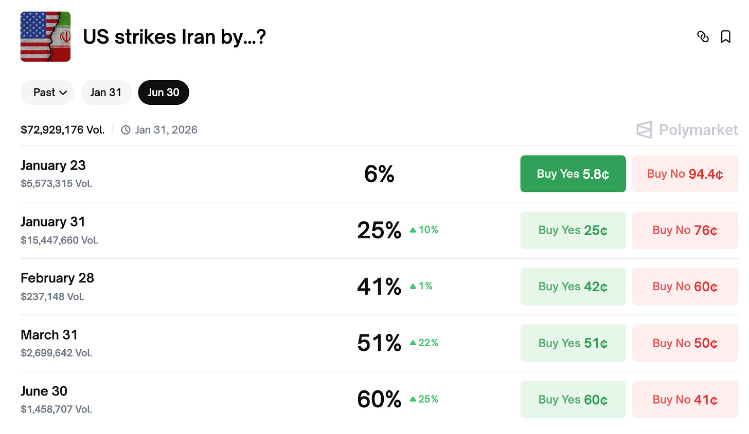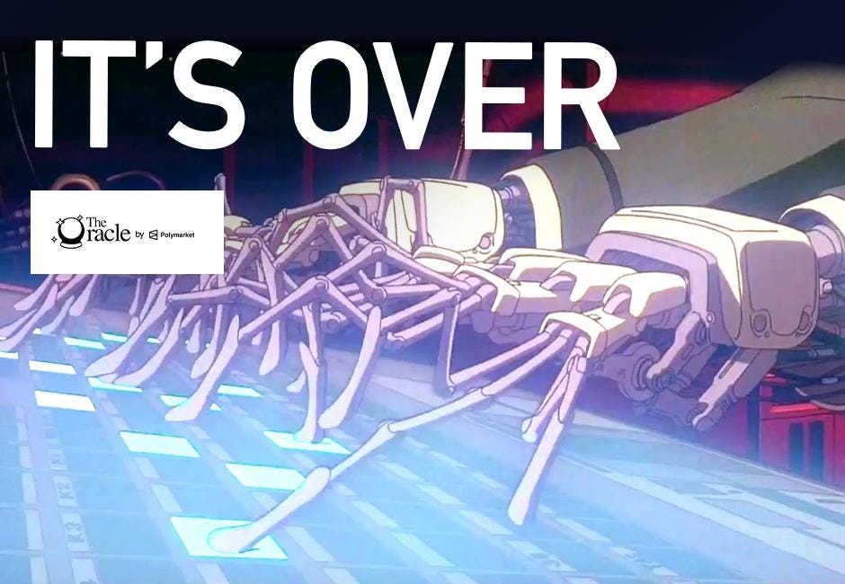 Nothing in The Oracle is financial, investment, legal or any other type of professional advice. All odds and forecasts are time sensitive and subject to change. Anything provided in any newsletter is for informational purposes only and is not meant to be an endorsement of any type of activity or any particular market or product. Terms of Service on polymarket.com prohibit US persons and persons from certain other jurisdictions from using Polymarket to trade, although data and information is viewable globally.