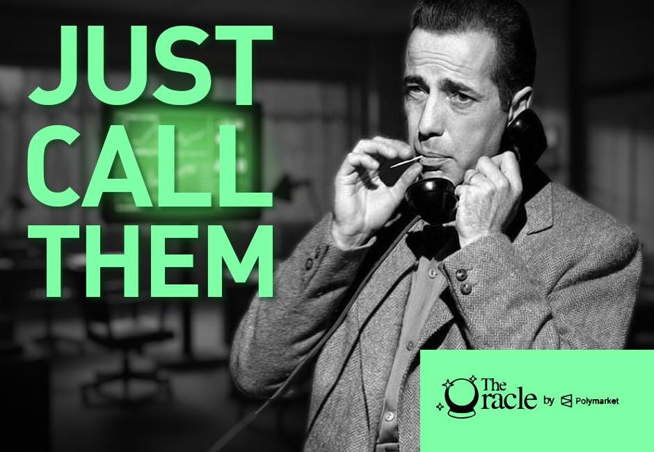 Nothing in The Oracle is financial, investment, legal or any other type of professional advice. All odds are time sensitive. Anything provided is for informational purposes only and is not meant to be an endorsement of any activity or market. Terms of Service on polymarket.com prohibit US persons and certain other jurisdictions from using Polymarket to trade, although data and information is viewable globally.