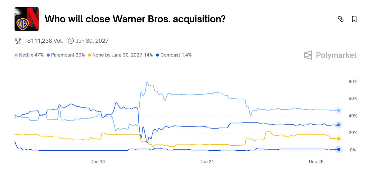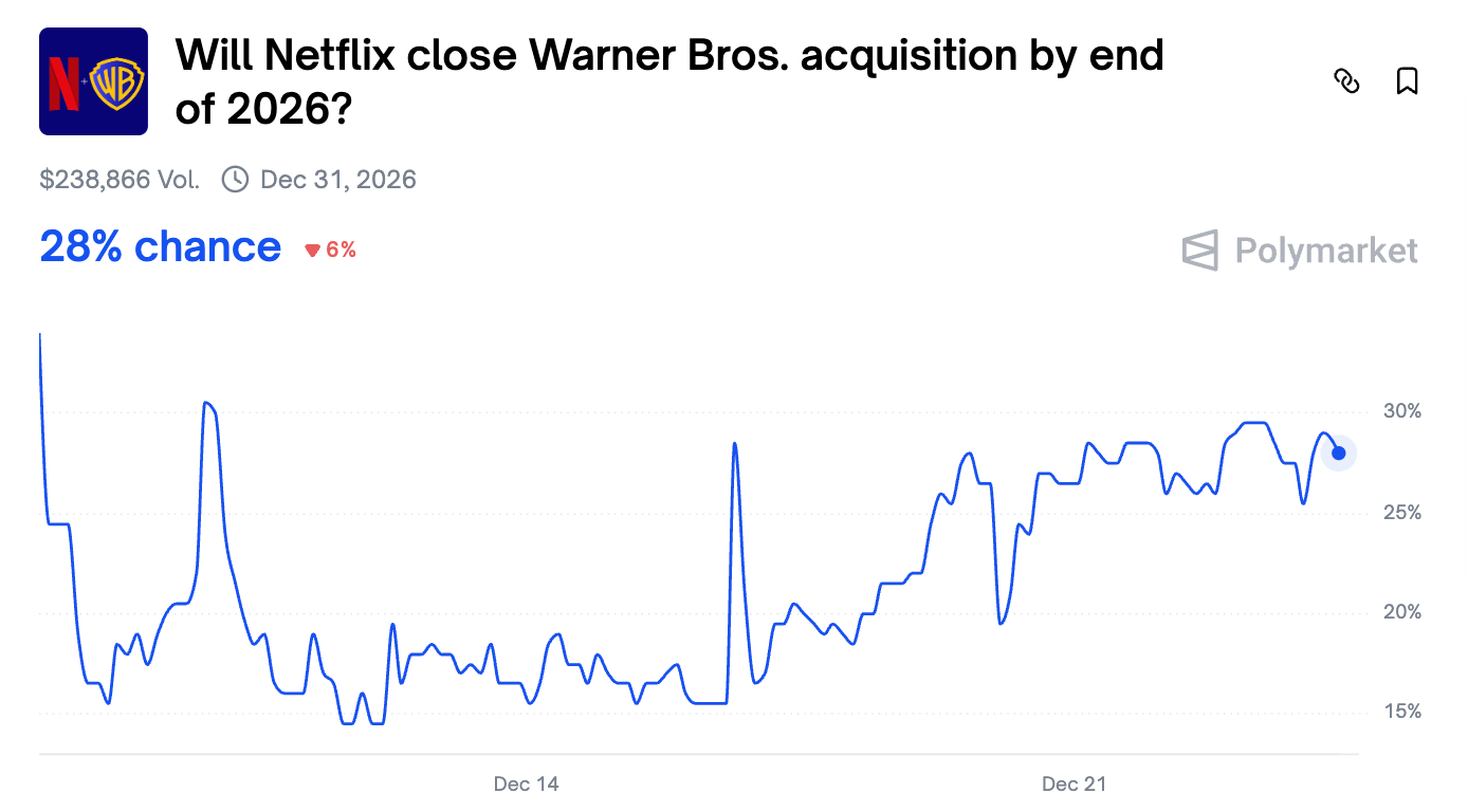 We have Netflix’s odds of closing by end of 2026 at ~28%. Why is it projected to take so long?