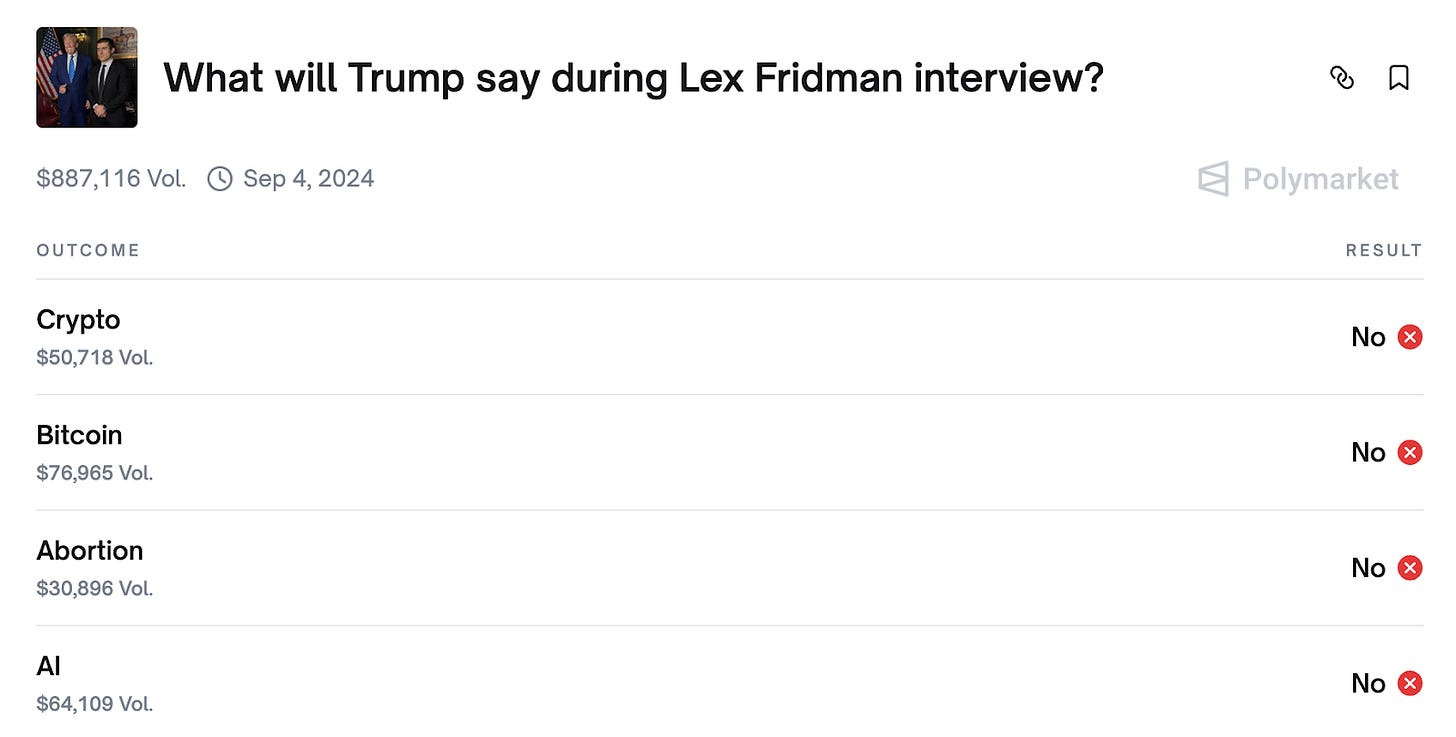 My biggest win for mention markets, was on the Trump interview on the Lex Fridman podcast. Lex Fridman was supposed to do a podcast with Trump and there was a mention market. The video was supposed to drop at around 10:30pm Indian time.