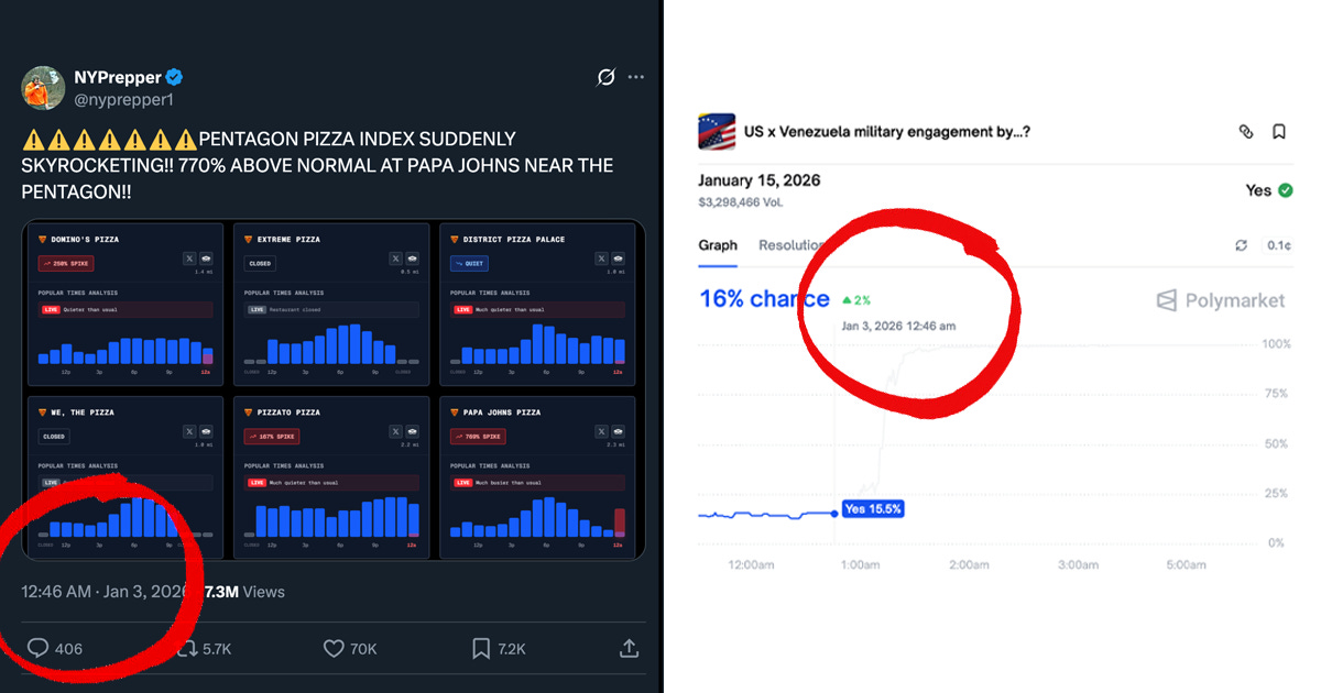 But If you look at the Polymarket data, you had a window of about an hour and a half to act on the pizza signal before the market fully priced it in.