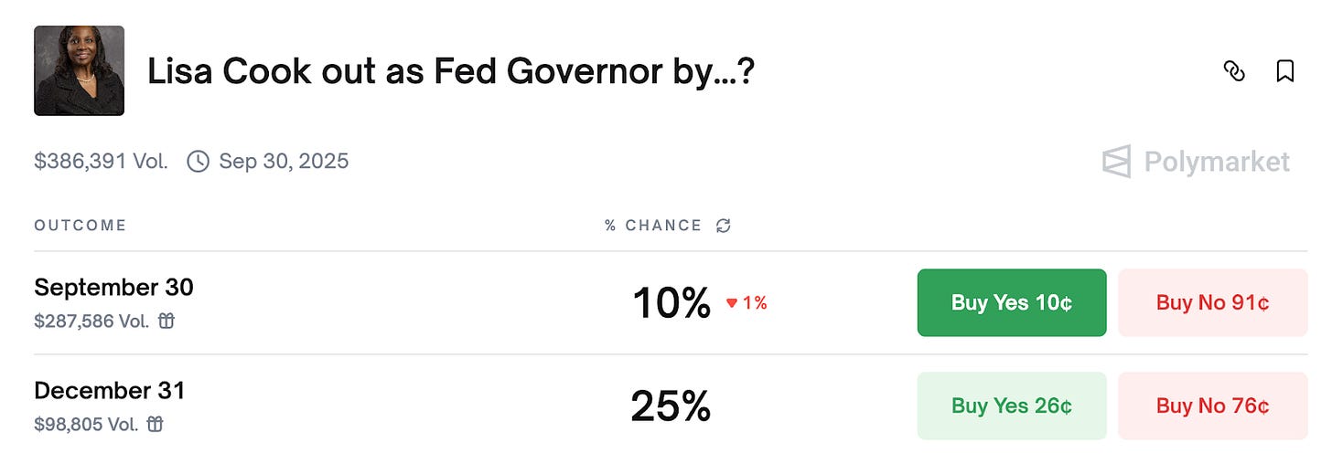 Another part of this is Trump’s pressure on the Fed to cut rates and his attempt to fire Fed Governor Lisa Cook.